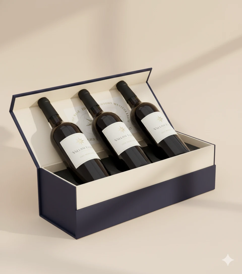 Eleganckie pudełka z tektury falistej, dostępne w wielu rozmiarach, idealne do estetycznego pakowania wina, whisky lub innych alkoholi. Świetnie sprawdzają się jako prezent biznesowy czy firmowy. Istnieje możliwość personalizacji — logo na ozdobnym kartoniku, wstążka z nadrukiem lub elegancki bilecik dodany do opakowania.